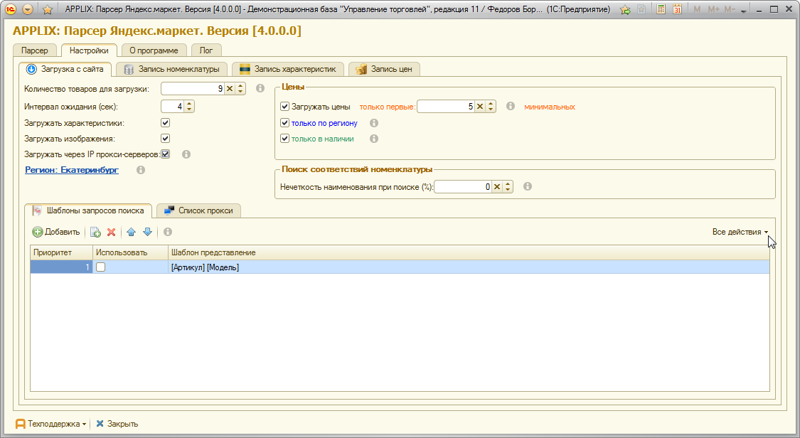 Парсер яндекс.маркет - загрузка в 1С УТ 10-11, КА, УПП, УНФ