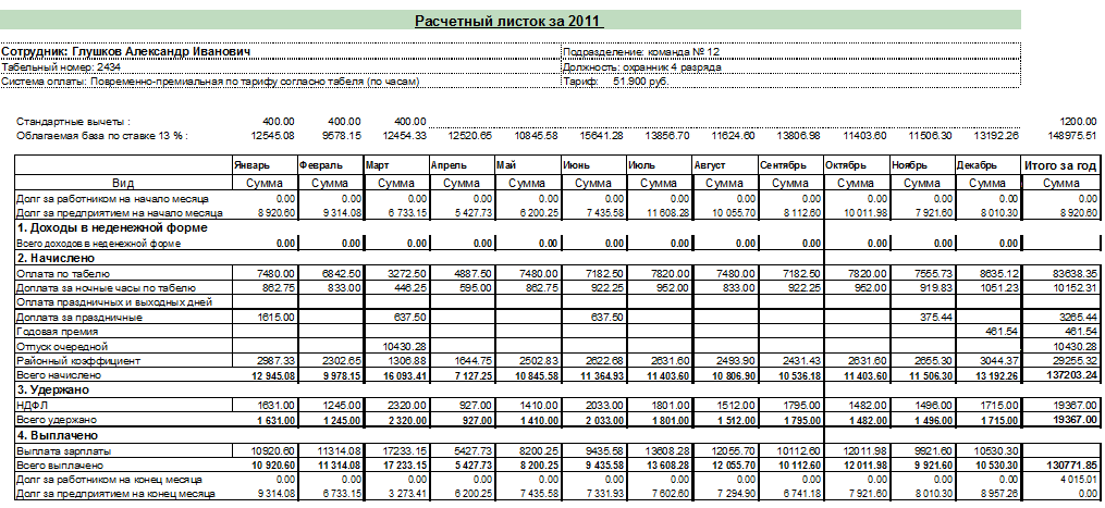 Пример прилагается http://clip2net.com/s/iEYul3 это пример, но работать должен как типовой расчетный листок.