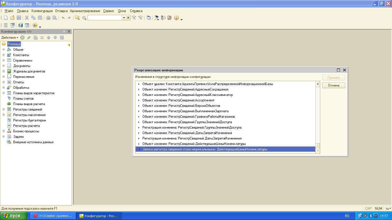 При обновление 1С Розница 2.0.8.11(12) на 2.1.Х.Х не удается принять Реорганизацию информации.