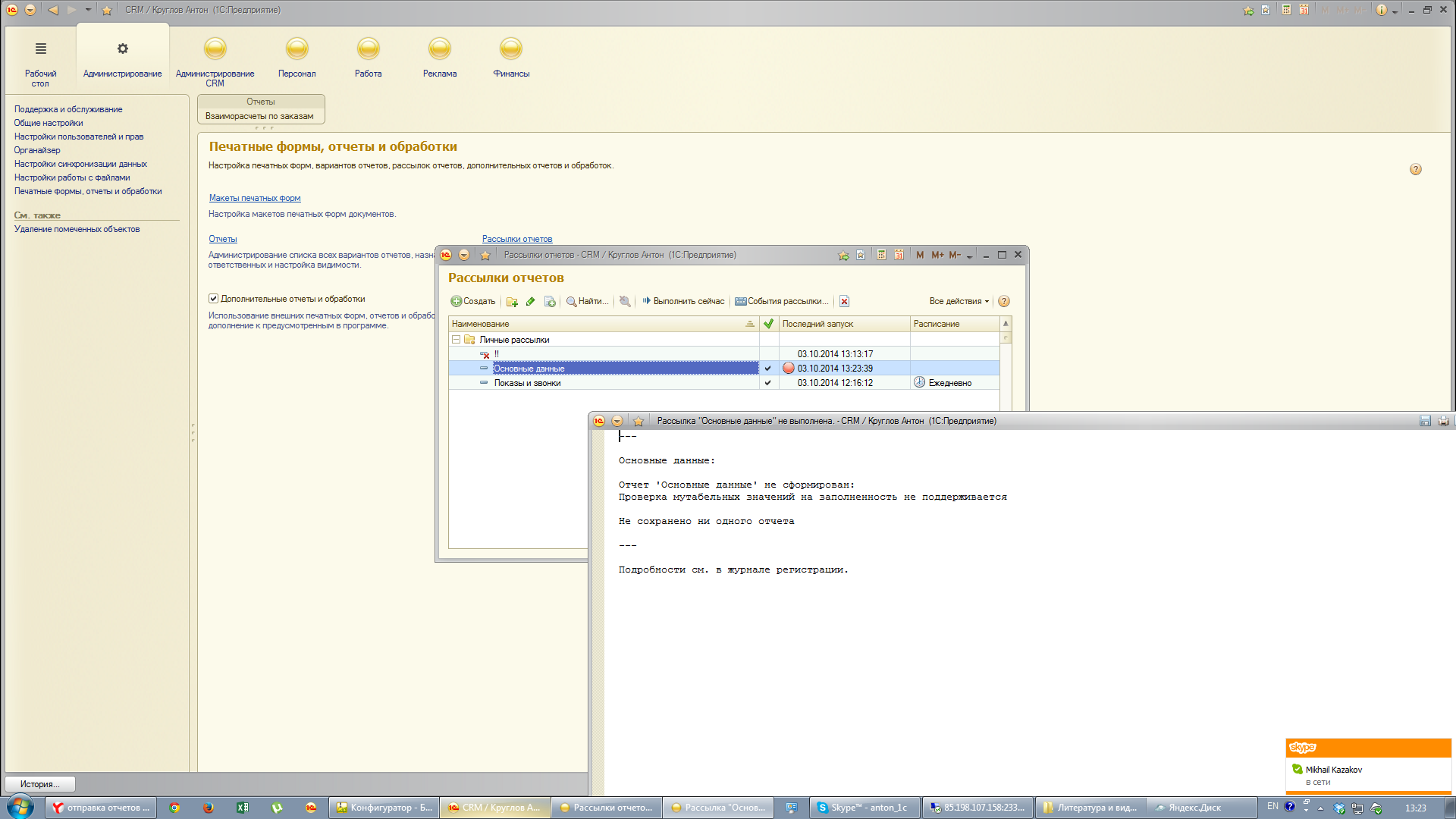 В конфе на основе БСП убрать ошибку при отправке отчета на почту