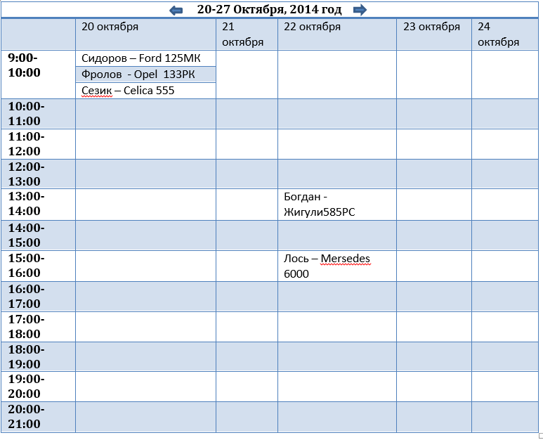 Необходимо разработать модуль предназначенный для записи автомобилей на ремонт на определенное время заданного дня. В записи необходимо указать такие параметры, как Время записи, ФИО клиента, Автомобиль клиента, неисправность/описание, диспетчер, мастер (с этим проблем не будет ни у кого)