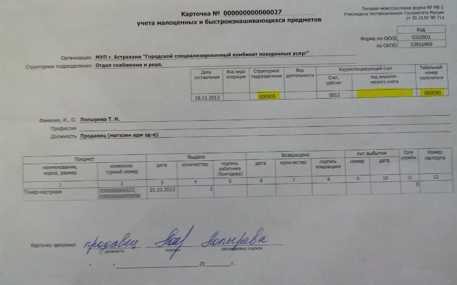 Для типовой БП ред.2.0 надо сделать внешнюю печатную форму МБ-2 (Карточка учета малоценных предметов) для документа "Передача материалов в эксплуатацию".