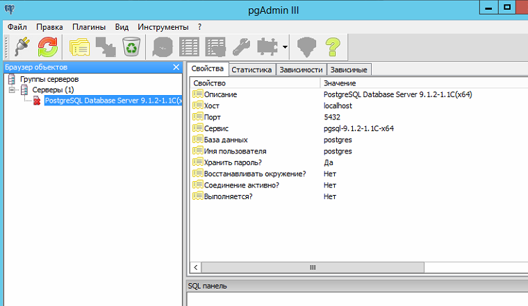 1С сервер работает в связке с базой PostgreSQL.