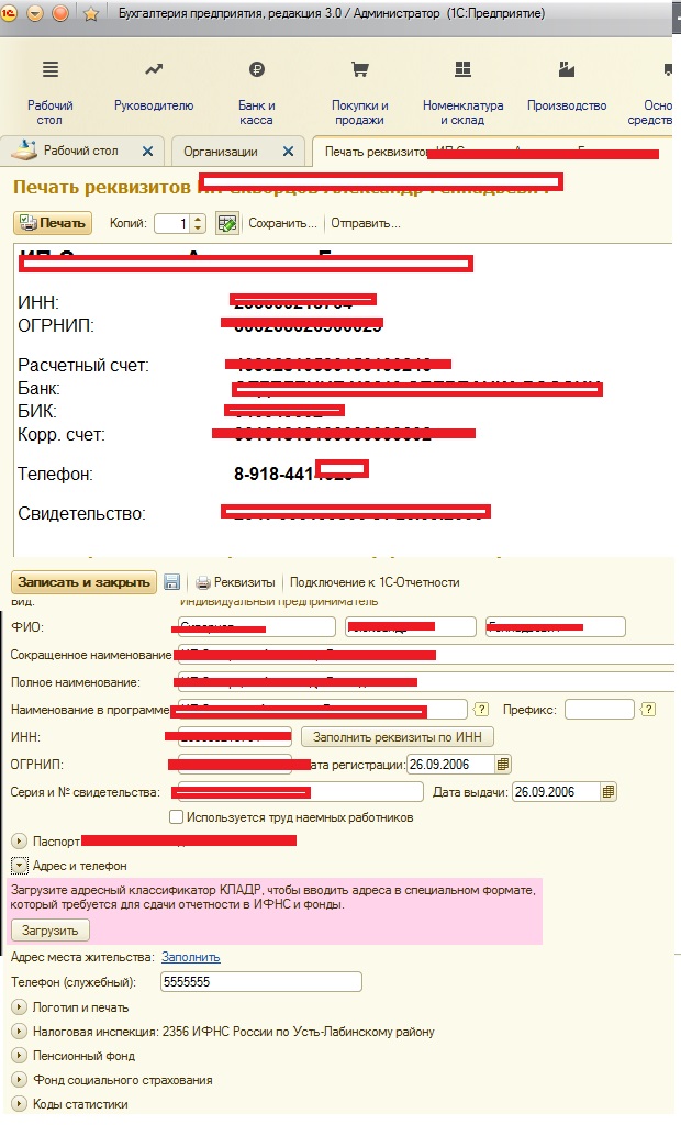 Пользователь хочет изменить телефон своей организации, который печатается в реквизитах.