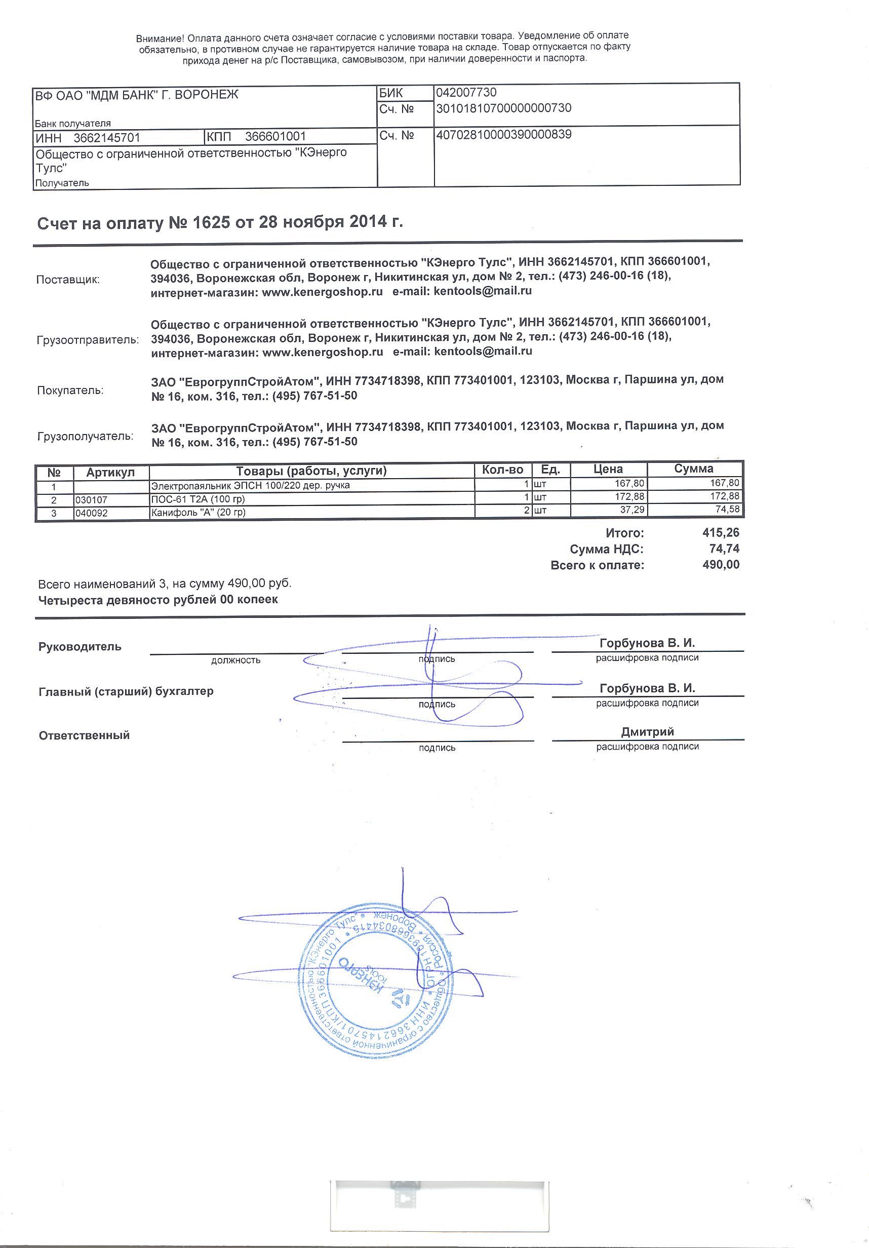 К письму приложен файл в ворде с макетом счета и файл с картинкой печати.