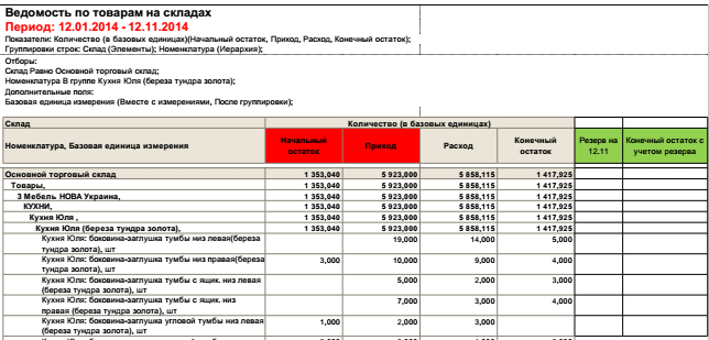 Доработка отчета "Ведомость по товарам на складах" (УТ 10.3)