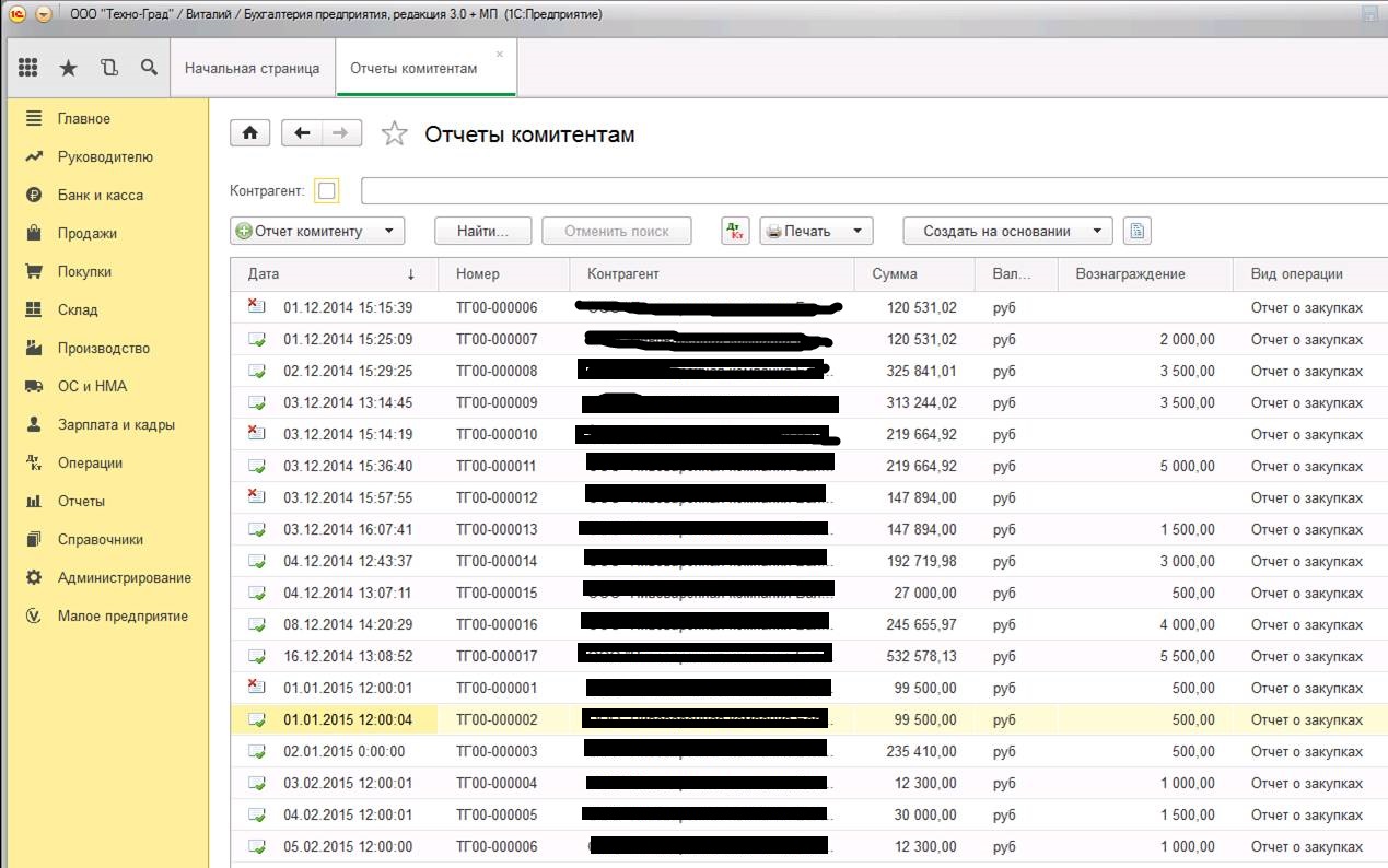 Мне нужно чтобы в этом обработчике была возможность выбора документов «отчеты комитентам» из меню покупки.