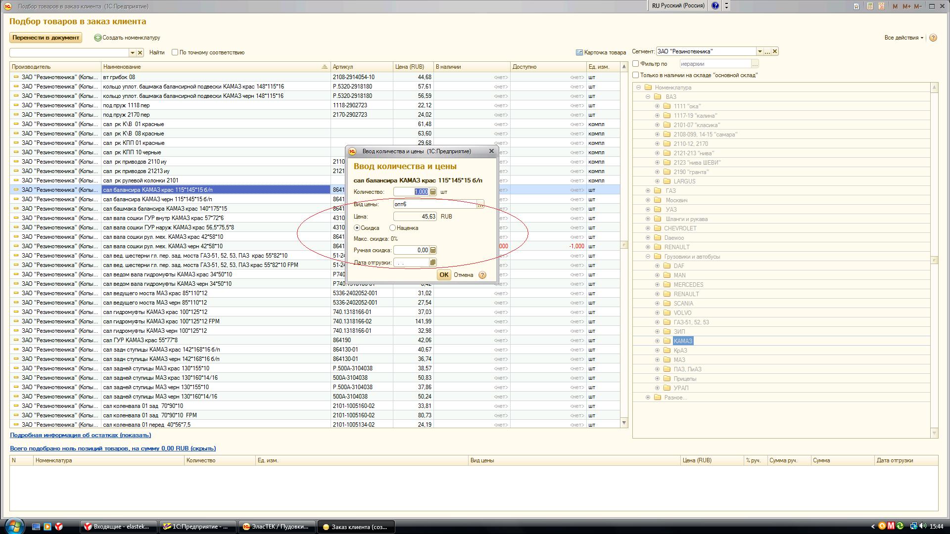 доработка формы подбора товаров в документ УТ11