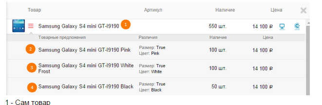 2-4 - Его SKU. У каждого SKU полноценное название. Уникальный внешний id. Своя цена. Свое количество. Хотелось бы так видеть товар. В такой структуре. В 1С.