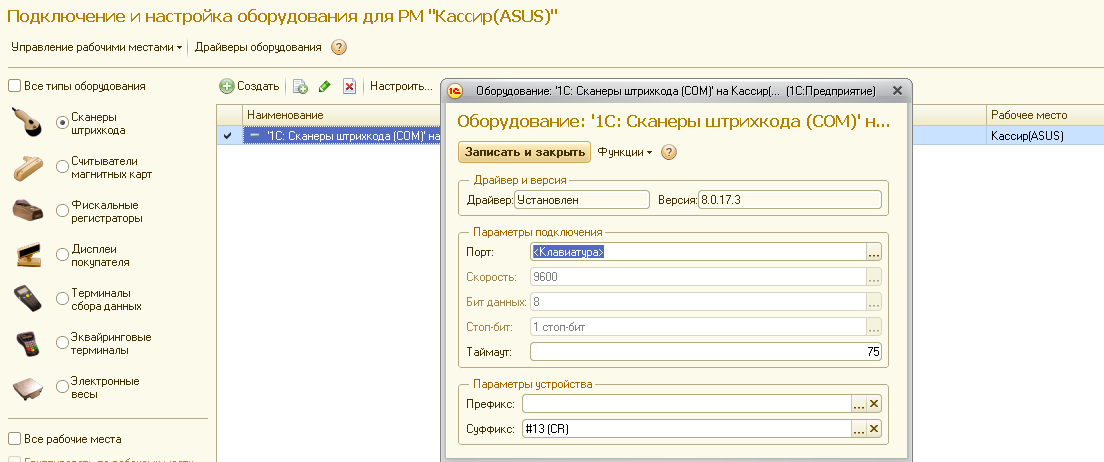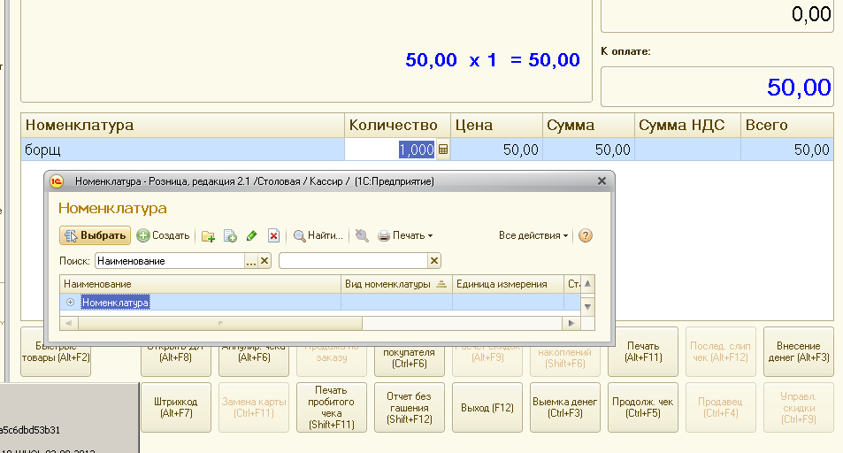 Сканер Honeywell Voyager 1250g. В РМК после сканирования товара позиция товара появляется в чеке, но после этого открывается окно выбора справочника номенклатуры. Нужно устранить появление окна выбора.