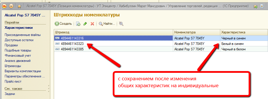 чтобы сохранились характеристики телефонов индивидуально, у которых записаны штрихкоды к характеристикам.