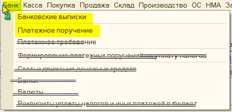 - банковские выписки – только просмотр, менять не может, и видит только те где ответственный «менеджер»