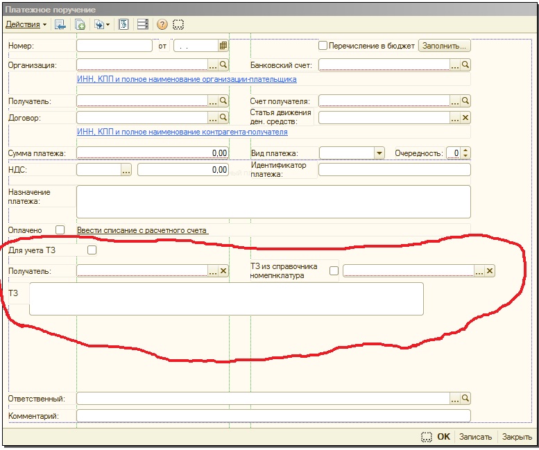 Требуется дописать платежку или создать новый документ основания со следующими реквизитами рис.1