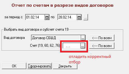 Требуется наладить корректный отбор по счету (субсчету). Сейчас отбор работает некорректно.
