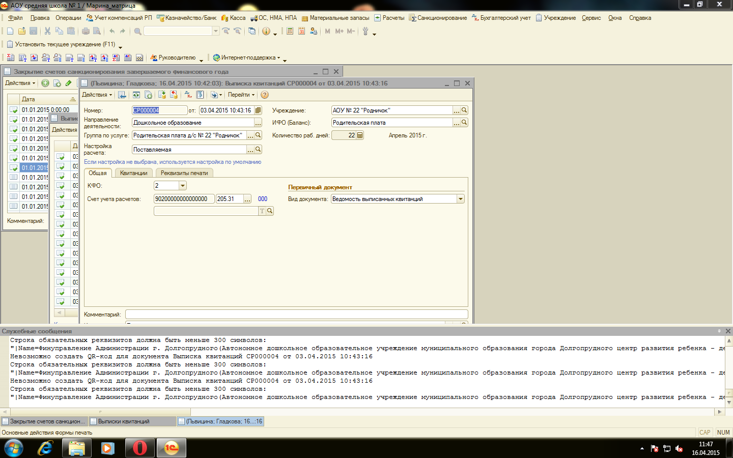 Выписка квитанции со штрихкодом почему то в отдельных учреждениях выскакивает ошибка. Это не по всем учреждениям что нужно сделать ? Скриншот высылаю.