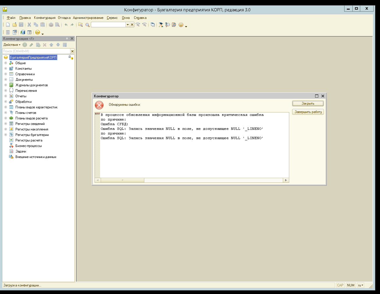 Выполнить обновление типовой 1С Бухгалтерии КОРП 3.0.38.55 на 3.0.39.60, сейчас ошибка.