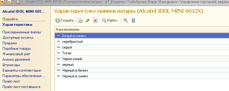В новой УТ начинали работу с торговыми предложениями товаров, характеристики только по цветам , телефон - белый, черный.