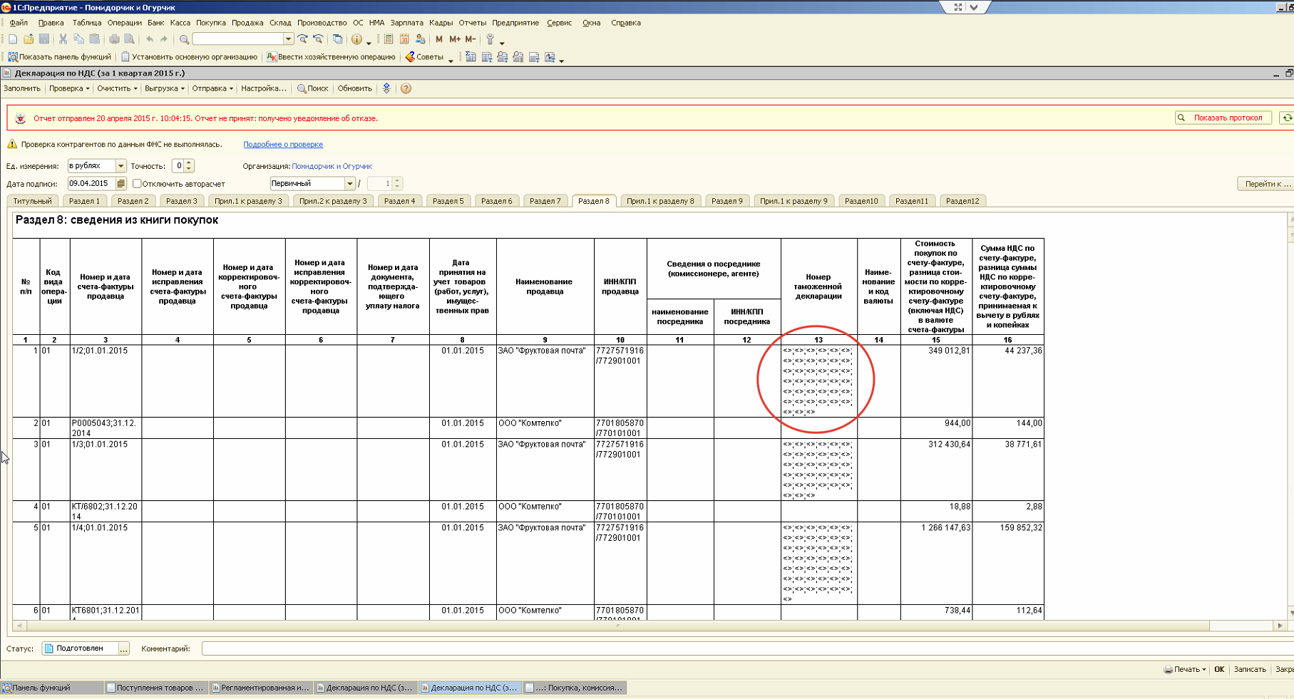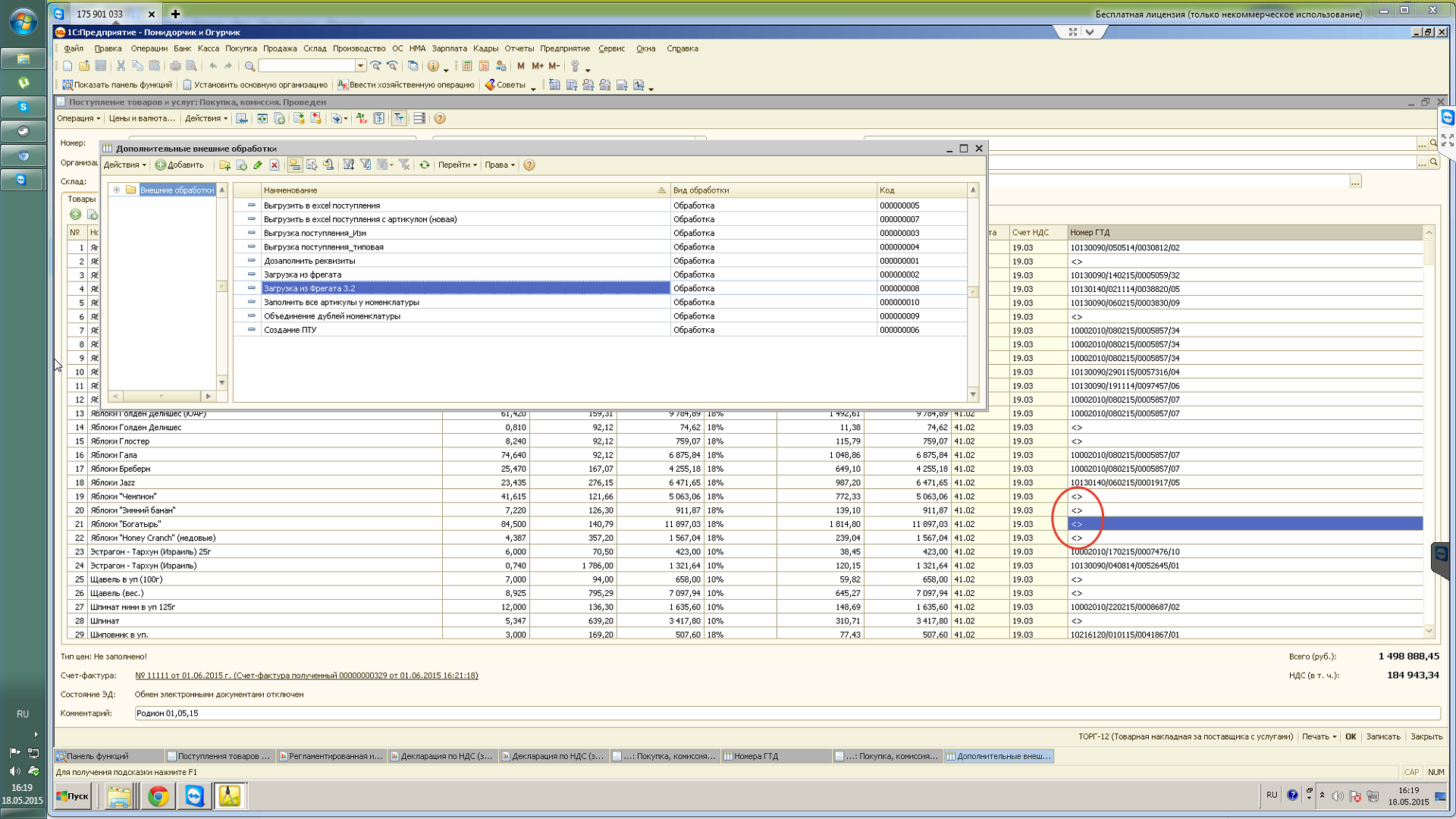 При использовании внешней самописной обработки "Загрузка из Фрегата 3.2" (загружает данные из XML файла) столбец ГТД, если не указано значение заполняется символом <> (пустое наименование,см. скрин), и он переносится в декларацию, от этого нужно избавиться.