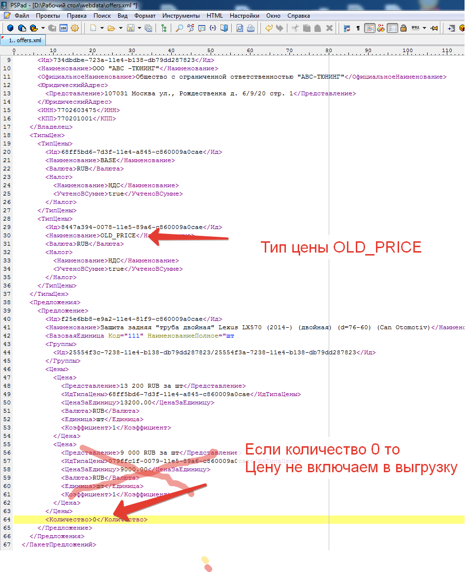 Выгружается несколько видов цен.
