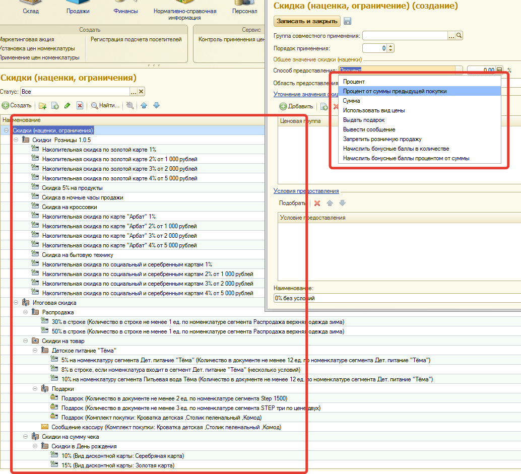 !!!СРОЧНО!!! В розницу 1.0 внедрить механизм скидок по аналогии с розницей 2.0