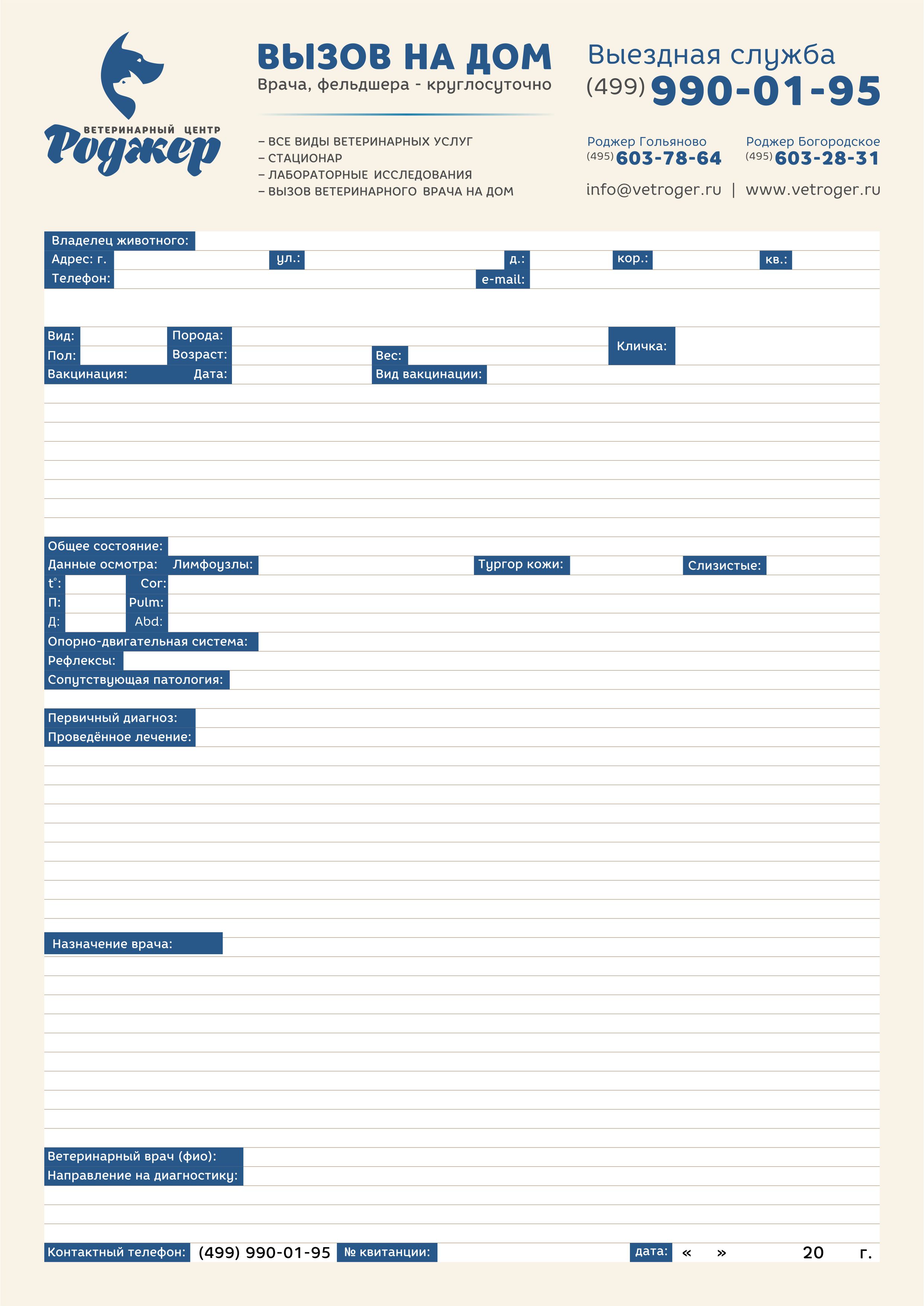 3. Шаблон осмотра. Собственно, сам текст, который нужно оформить по структуре бланка приёма, сделать фирменную шапку с логотипом, слоганом и контактами.