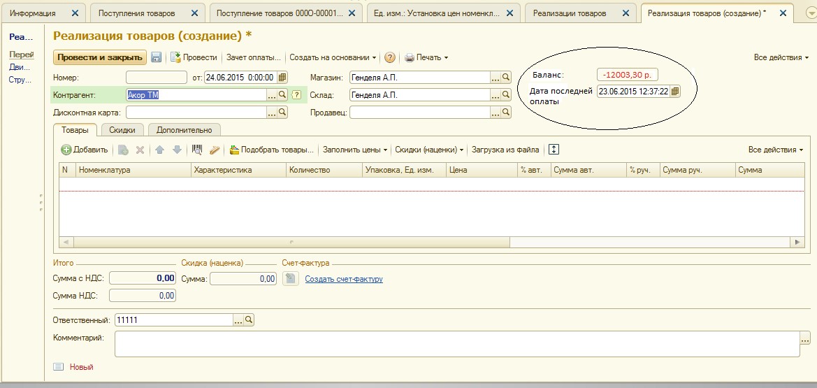 Доработка формы документа «Реализация товаров» в розница 8, редакция 2.1