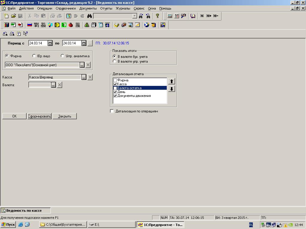Требуется сделать отчет "Ведомость по кассе" в УНФ 1.5 из 1С 7.7 (скрины - типовой, но есть небольшая доработка - добавлены колонки)