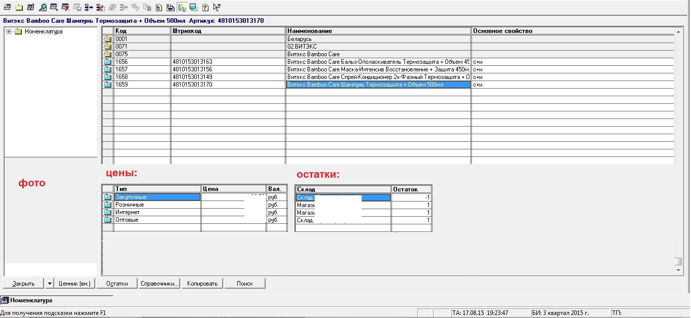 Требуется добавить на форму справочника отображение фото, остатков и цен выбранной позиции. Изображения предполагается хранить за пределами каталога базы в отдельной папке (с:/dropbox/img). Имя файла = четырехзначный код товара. Конфигурация типовая.