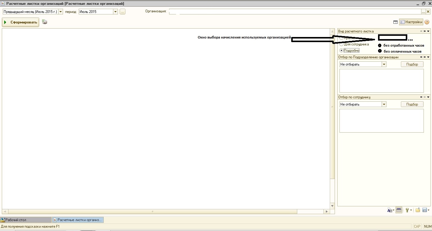 Выбираете начисления в окне фильтра, и они не отображаются в отчете и не рассчитываются.