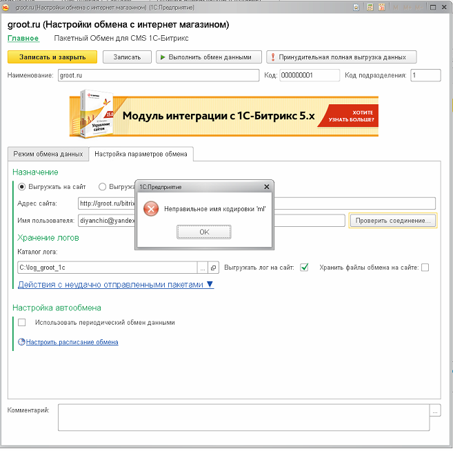 Исправить ошибку обмена УТ11 и сайта на битриксе