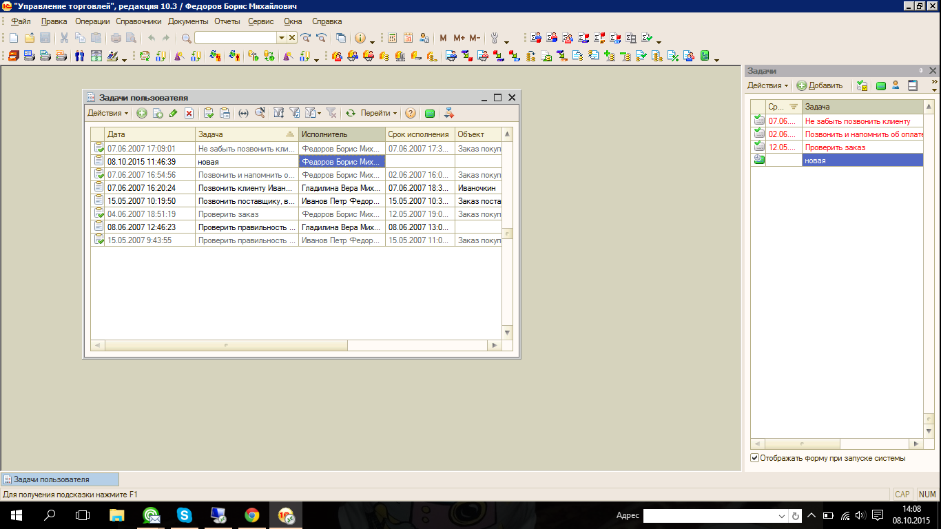 улучшить(доработать ,скопировать ..)"мои задачи" в КА1.1 -сделать как в УТ10-3. сортировка по исполнителю,напоминалки, актуальность и тп. .
