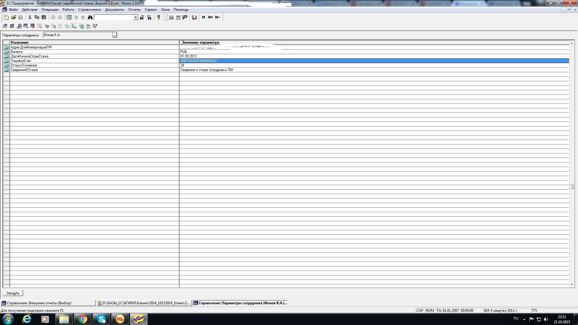 Надо в Камин 2,0 поменять лицевые счета у сотрудников на новые из файла excel в параметр сотрудника Лицевой счет/