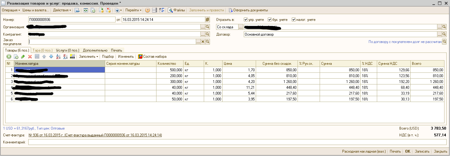 1. Сумма по документу в валюте * курс = Сумма с учетом НДС (всего по накладной) с правильным округлением до копеек
