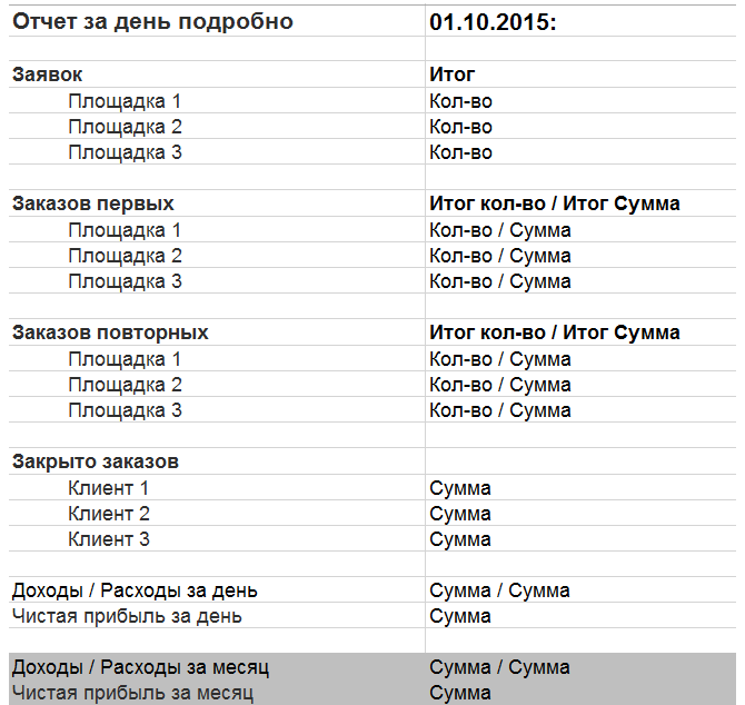 Вид отчета во вложении на картинке. Так же картинкой небольшое пояснение откуда брать данные.