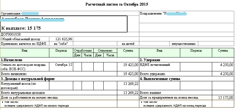Во вложении как должен выглядеть расчетный листок на договорника при начислении ему натур.дохода.