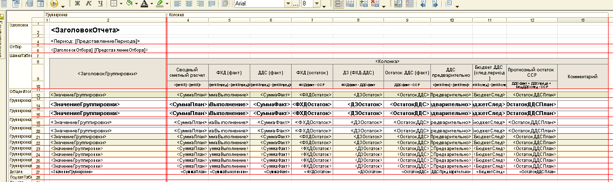 2) В отчёте для одного ЦФО (поиск из элементов справочника ЦФО по коду) надо добавить исключение: первую колонку )=Сводный сметный расчет) надо заполнить не стандартно из регистров базы, а рассчитать по колонкам отчёта (ДДСфакт + ДДСпредв + БюдДДСслед).