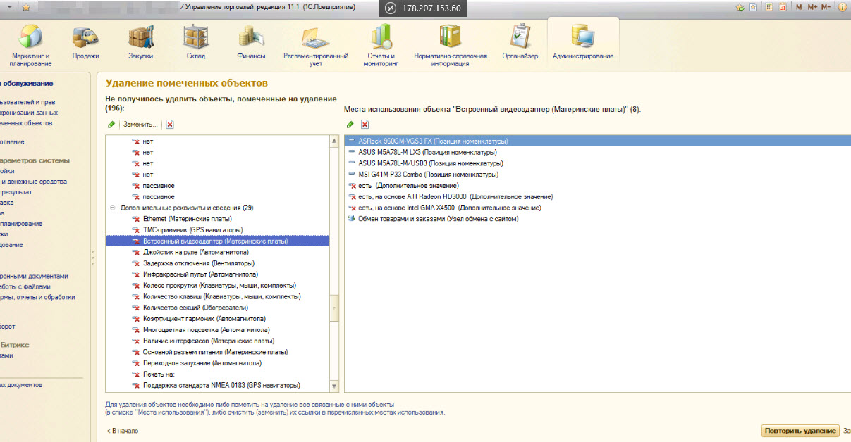 Удалить дополнительные реквизиты у номенклатуры УТ 11 8.3