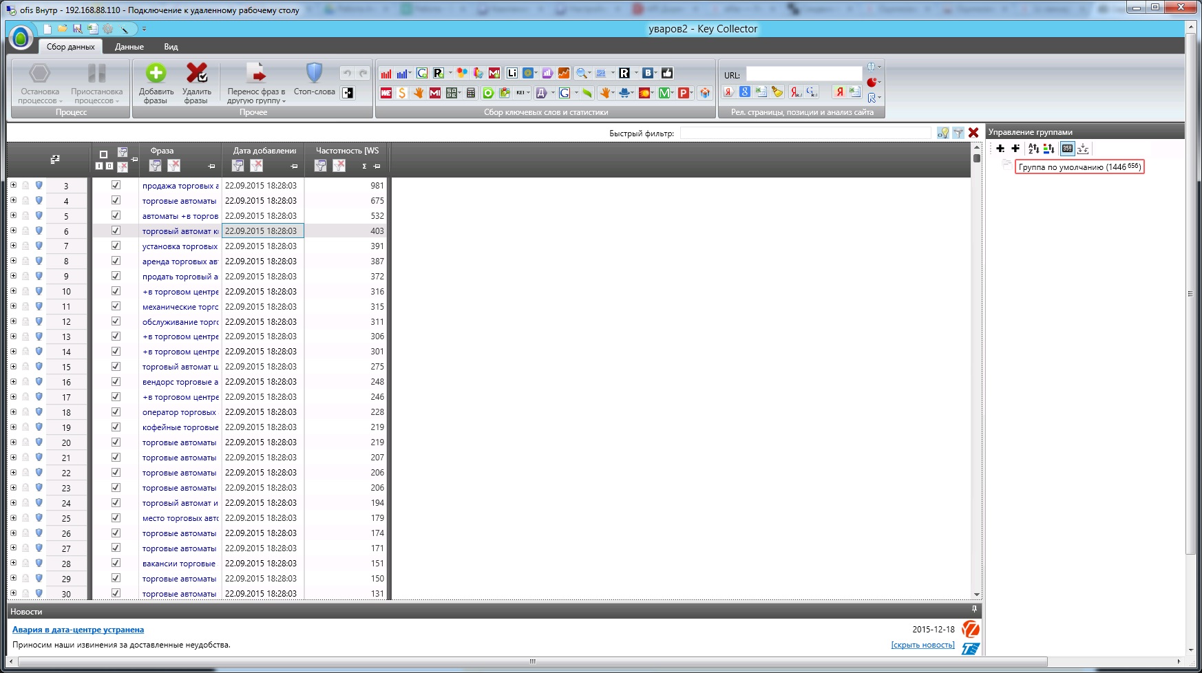 Необходимо загрузить данные по столбцу "фраза" и "Частотность [ws]".