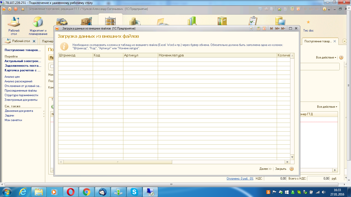 поступление - загрузить из внешнего файла
