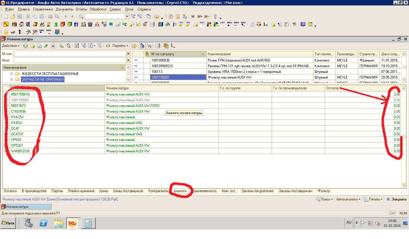 требуется доработка блока "аналоги" для объединения пользователем 1с нескольких номенклатурных позиций в группу.