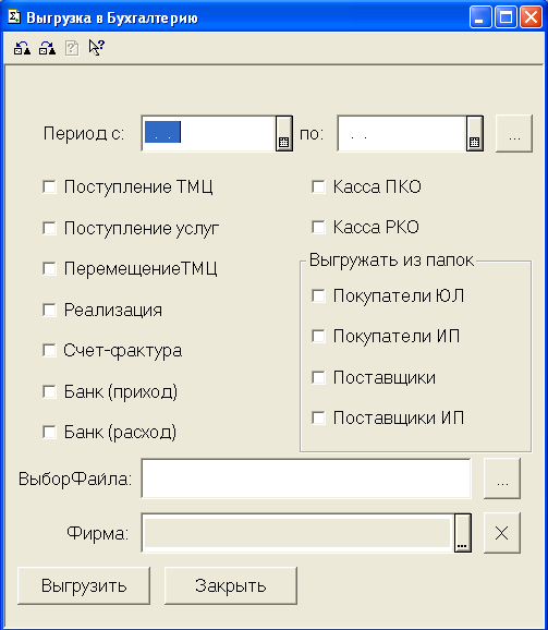 Во вложении внешний вид обработки выгрузки.