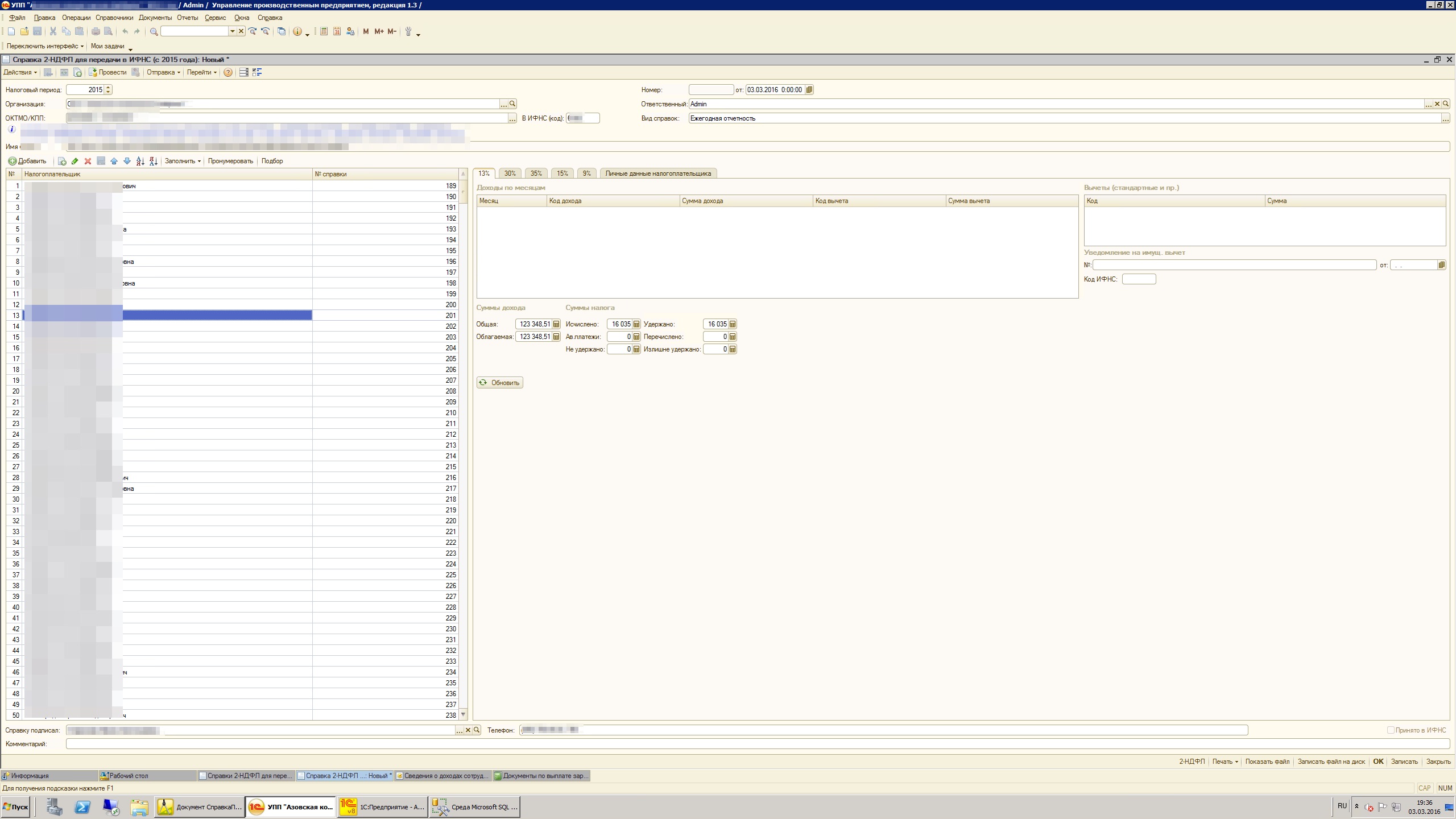 при формировании документа Справка 2НДФЛ для передачи в ИФНС с 2015 года по одному подразделению у всех сотрудников нет доходов по месяцам. Хотя в другом подразделении всё ок. Конфигурация УПП 1.3.72.3.
