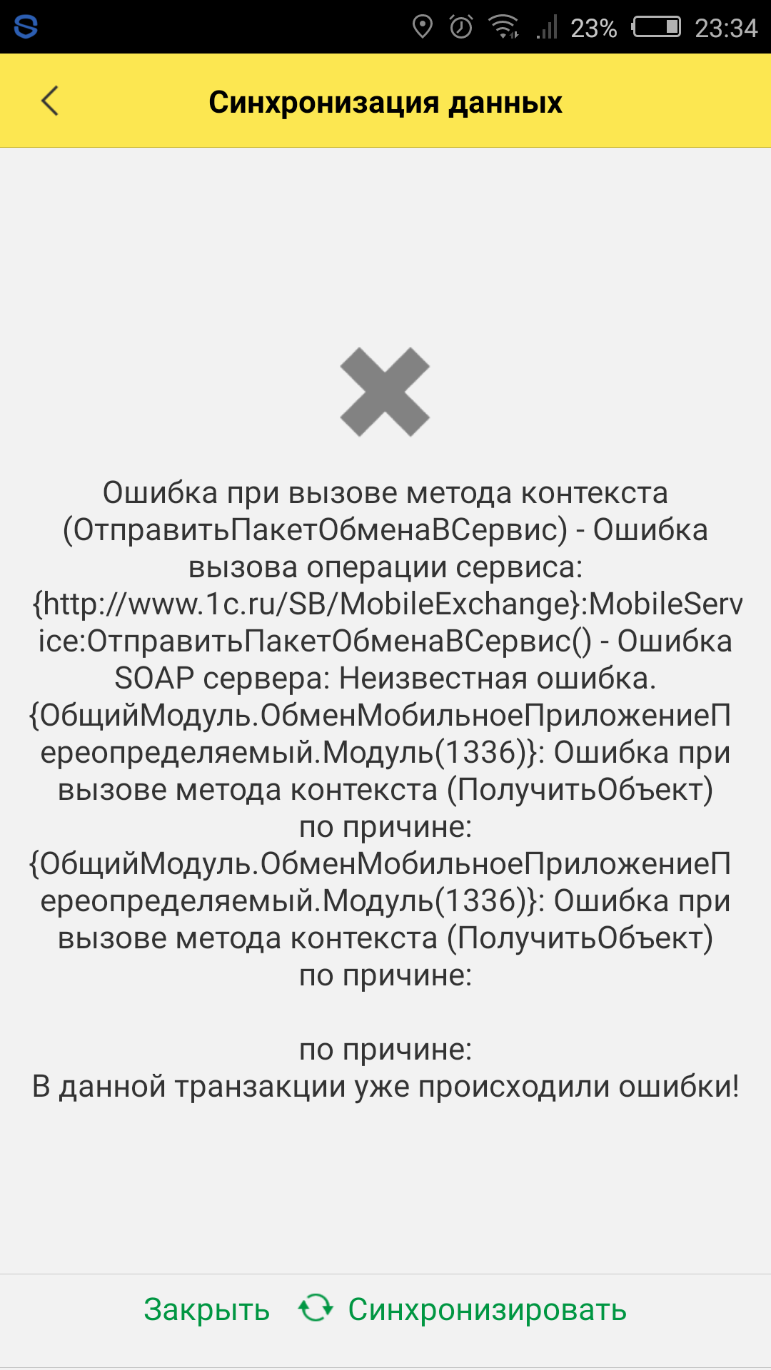 При синхронизации с мобильного устройства выдает ошибку. Скриншот прилагается.