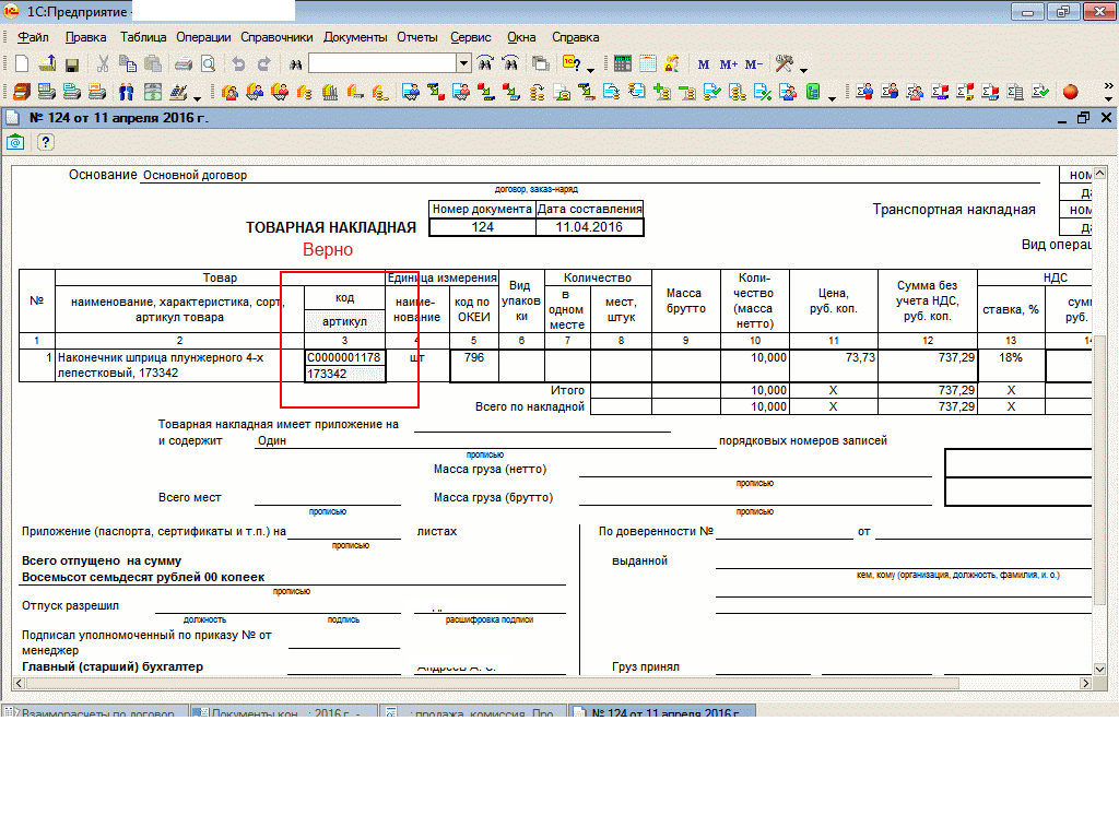 Заменить вывод "кода" на "артикул" позиции при печати торг-12. т.е см. вложение.