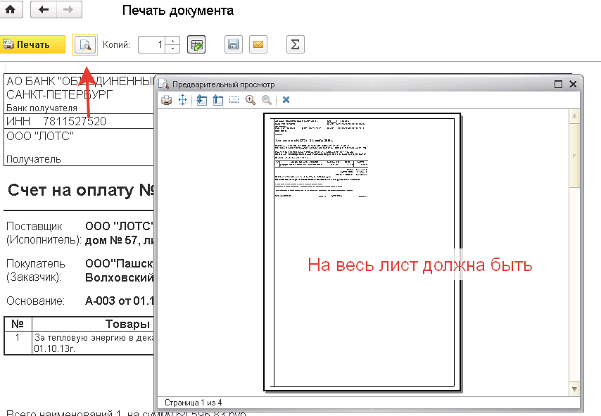 "Счет" (Печатается документ Счет на оплату)