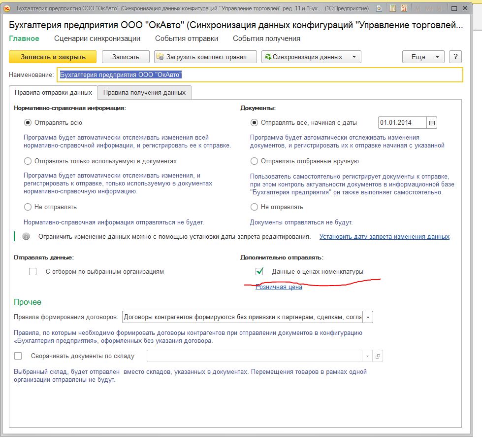 После обновления конфигураций перехода на новый формат "EnterpriseData" перестал синхронизироваться док. "Установка цен номенклатуры" (из УТ в БП). Раньше в настройках синхронизации было соответствующее поле. Сейчас оно пропало...