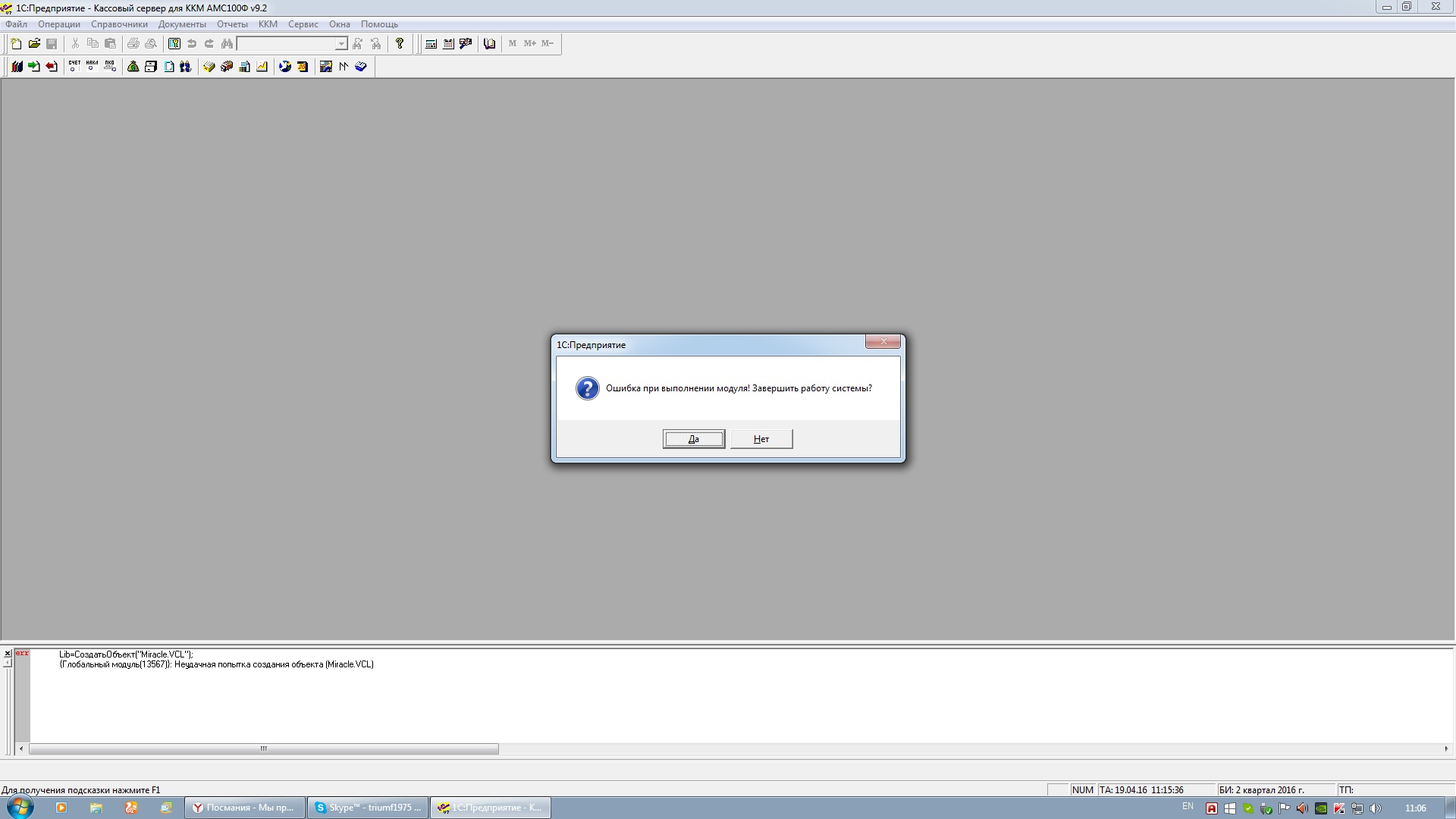 Пишет : Ошибка при выполнении модуля. Завершить работу системы.