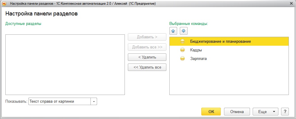 Настроить панель разделов КА 2.0