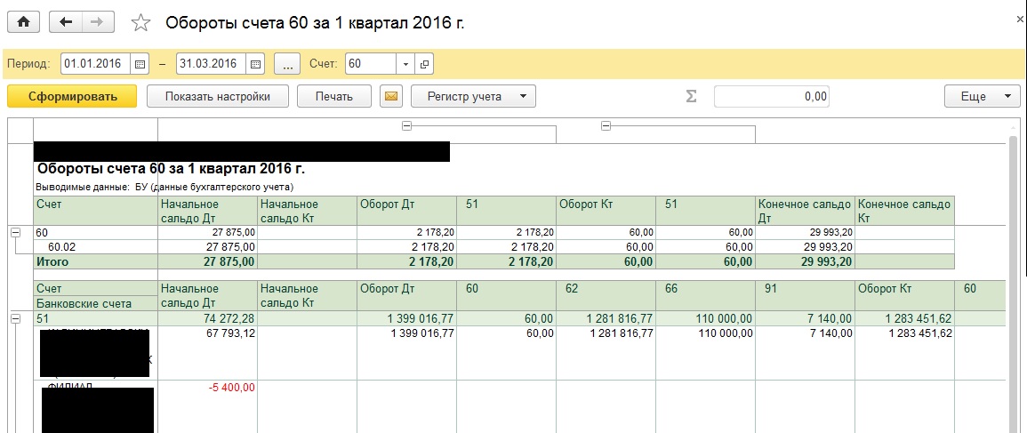 Обороты счета по конкретным счетам с вертикальным выводом(БП 3.0)