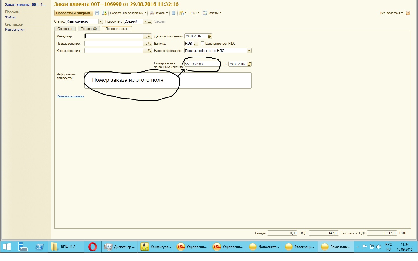 Необходимо в него вывести данные из Докуемнта "Заказ клиента" поле "НомерПоДаннымКлиента"